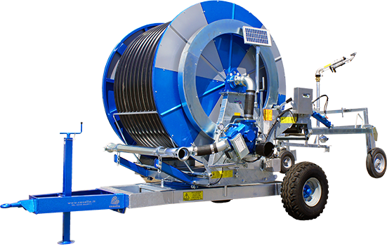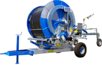 The Casella Hy-Turb S is a turbine drive hard hose irrigator manufactured in Italy, engineered for large-scale agricultural irrigation operations requiring reliable, water-powered hose recovery. This hard hose reel system utilises a turbine rewinding mechanism that harnesses water flow energy to power the hose recovery process, supporting hose configurations from 75 mm diameter at 400 metres to 90 mm diameter at 300 metres. The turbine drive system operates efficiently within a water flow range of 400-800 litres per minute (24-48 cubic metres per hour), making it ideally suited for medium to large irrigation projects where energy independence and operational simplicity are paramount.
