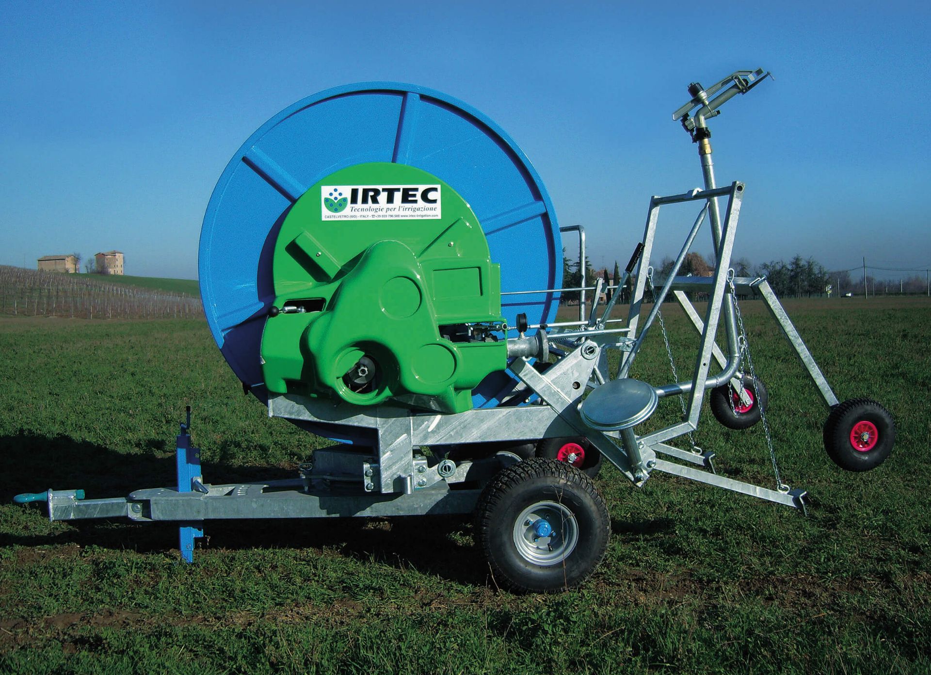 • Galvanized raingun trolley mounted on variable track wheels