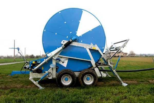 • Variable Track Galvanised Trolley with Auto-Stabiliser: Adjustable wheel track precisely positions the hose on tractor wheel tracks, preventing crop damage whilst the automatic stabiliser leg ensures consistent raingun alignment throughout the irrigation pass.