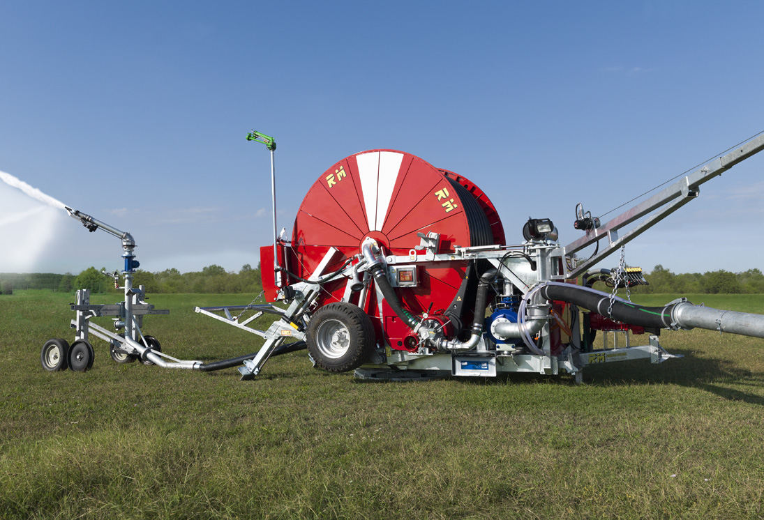 All RM hose-reel irrigation machines feature the medium density polyethylene hose (PEMD) with differentiated thickness starting from ø 90 included; the highest thickness near the reel allows for a better accuracy on rewind and a less ovalisation due to hose bending.