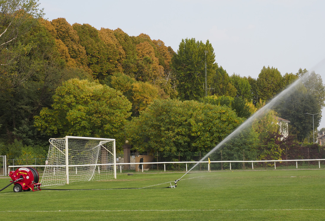 Reduced size and weight, excellent balance on wheels. Adjustable sector sprinkler with nozzles from diameter 8 to 14. Worm screw hose guide, for perfect rewinding of the hose. Wheeled sprinkler trolley with adjustable track (optional for mod. e40).